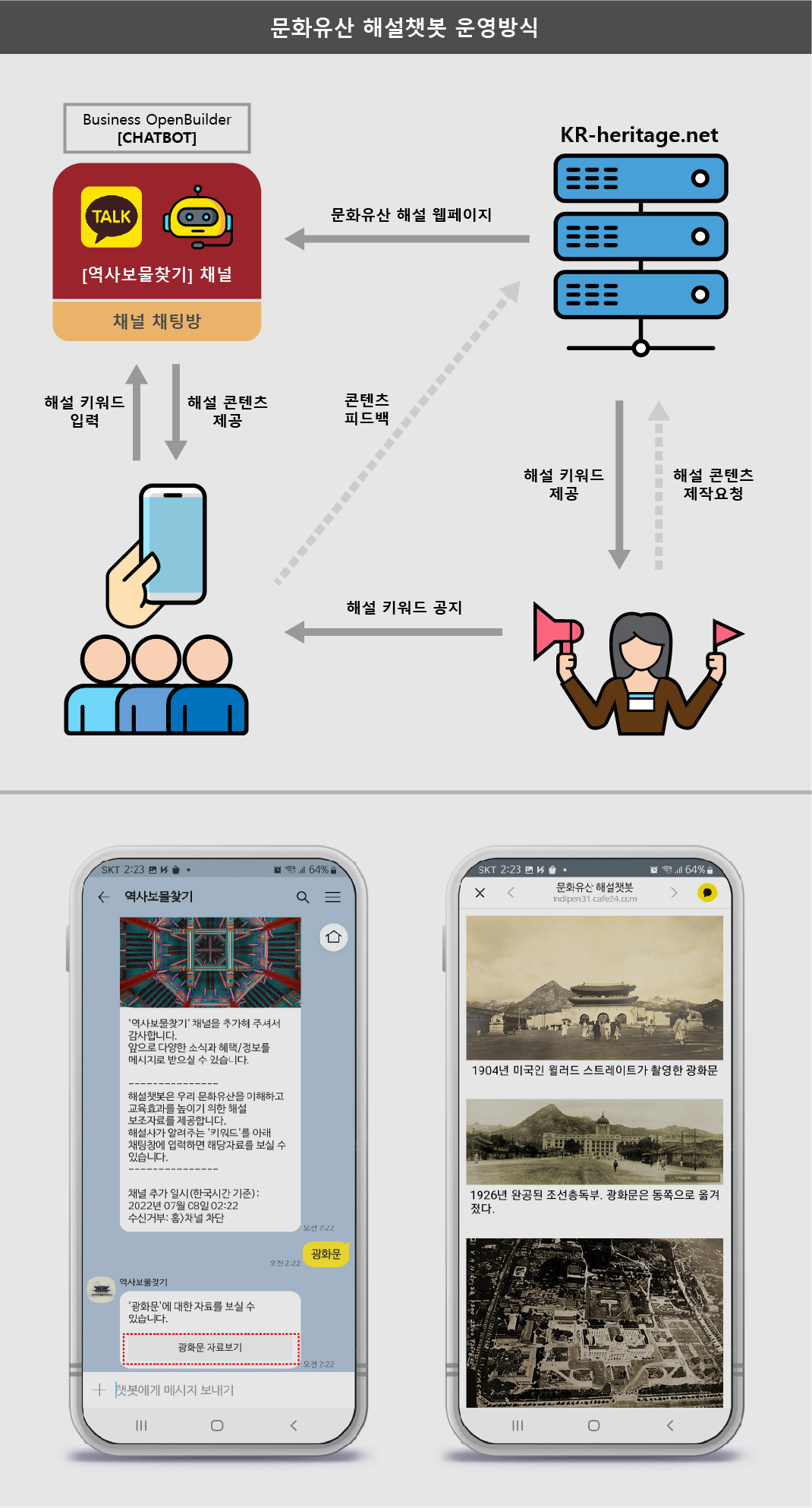 답사 현장에서 확인할 수 없는 역사적 사진 등의 자료를 ‘챗봇’의 방식을 통해 실시간으로 제공합니다.